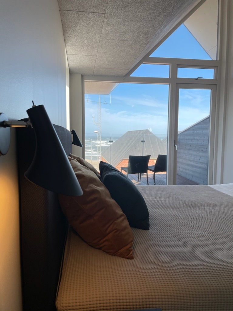 - Rummeligt lyst værelse med egen balkon og direkte udsigt til stranden.